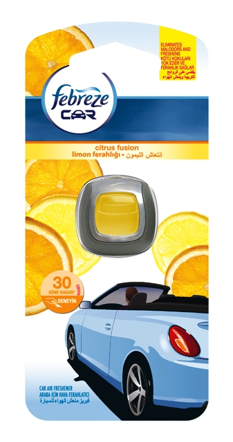 Febreze her yerdeki kötü kokuları yok eder, arabanızdakileri bile! Febreze CAR ile artık arabanızdaki kötü kokular da tarihe karışıyor. Açıldıktan sonra 30 gün boyunca aracınıza hafif, ferah ve çok hoş bir koku yayan ve enerjiye ihtiyaç duymadan kesintisiz çalışan bir araba kokusu olan Febreze CAR’ın her zevke göre dört farklı çeşidi bulunuyor. Yağmur Ormanları, Okyanus Esintisi, Bahar Çiçekleri ve Limon Ferahlığı kokularından birini tercih ederek arabanızda dilediğiniz ferahlığı yaşayabilirsiniz.