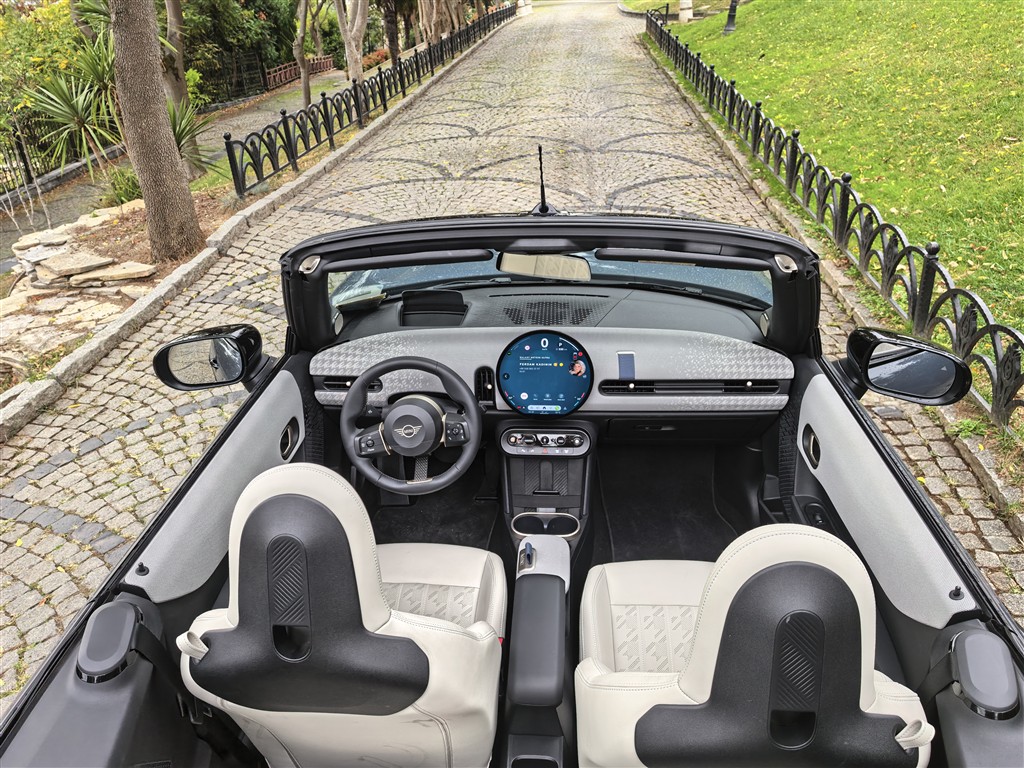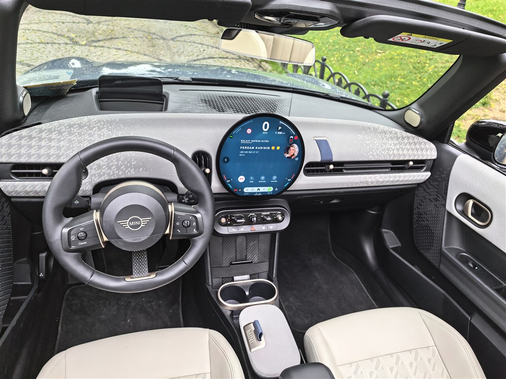 İç mekân, MINI’ye özgü o eğlenceli ama kaliteli atmosferi koruyor. Ortadaki büyük dairesel ekran, renkli grafiklerle sürüş modlarını ve verileri gösteriyor. Malzeme kalitesi birinci sınıf, koltuklar ise hem sportif hem de uzun yol konforunu sağlayacak kadar destekleyici. Testin sonunda MINI Cooper S Cabrio’dan indiğimde farkında olmadan gülümsediğimi fark ettim. Bu otomobil, bir yerden bir yere gitmenin ötesinde bir şey sunuyor: saf sürüş keyfi. Direksiyonun arkasında geçen her dakika, şehirde veya sahil yolunda fark etmiyor, adeta “yaşam enerjisi” gibi hissettiriyor. Üstü açıkken, motorun sesiyle rüzgarın karıştığı o his, kelimelerle tarif edilmesi zor bir keyif yaratıyor.