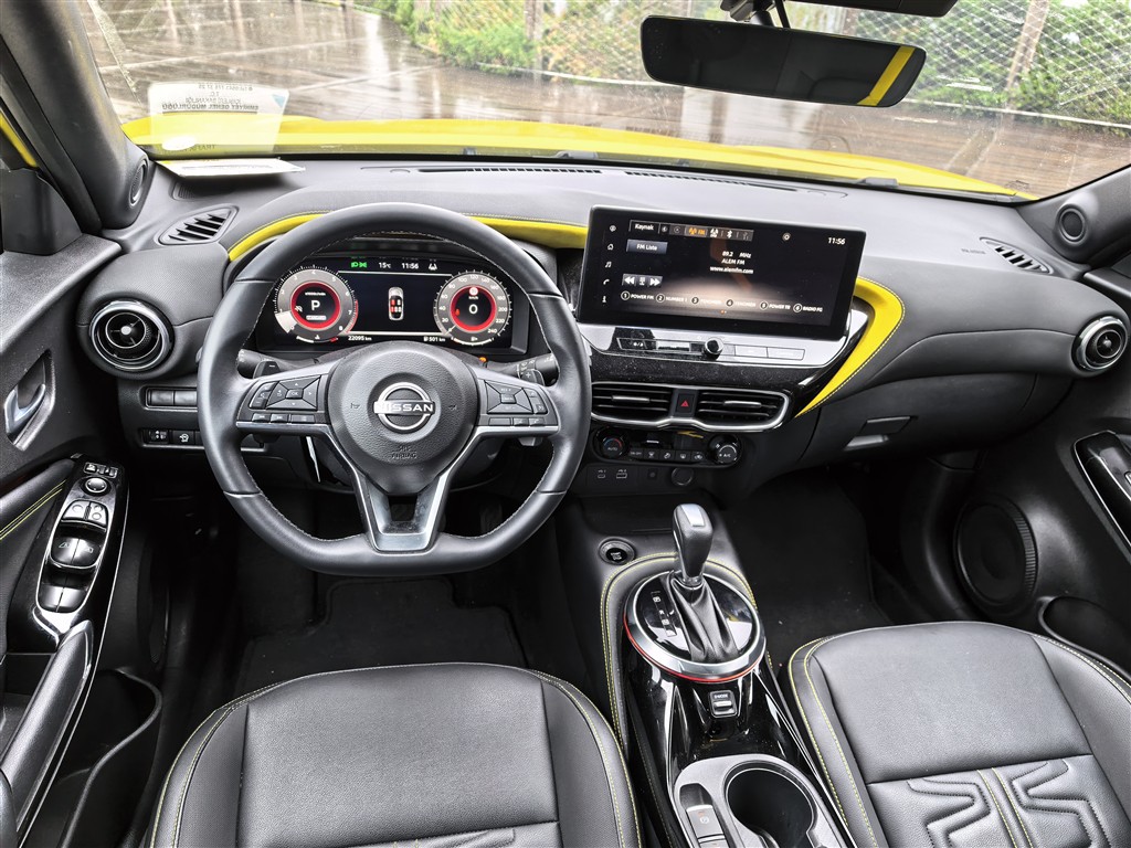 Yeni Nissan Juke N-Sport’un direksiyonuna geçtiğimde, daha ilk bakışta aracın standart Juke modellerinden ayrıştığını hissettiriyor. Parlak siyah ızgara, vurgulu tampon hatları ve dinamik LED far tasarımıyla birlikte Juke artık tam anlamıyla “sportif” görünüyor. Geniş jantlar ve sarı detaylarla kontrast yaratan gövde rengi, şehir trafiğinde bile dikkat çekici bir kimlik kazandırıyor.