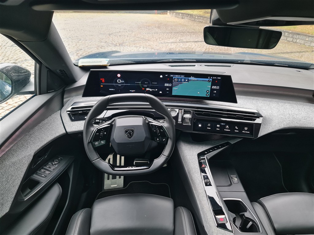 Kabin kapısını kapattığımda dış dünyadan hemen kopuyorum. İçerisi tam anlamıyla bir dijital kokpit. Peugeot’nun i-Cockpit tasarımı artık tamamen yeni bir seviyede: 21 inçlik kavisli ekran, sürücünün önünde adeta havada süzülüyor. Direksiyon küçük ve sportif, ekrana bakış açısı mükemmel. Malzeme kalitesi üst düzey, yumuşak dokulu yüzeyler, alüminyum detaylar ve ambiyans aydınlatmaları iç mekâna premium bir his kazandırıyor. Aracın en etkileyici yanlarından biri de iç mekân ambiyansı. Akşam saatlerinde mavi LED aydınlatmalar, minimal tasarımla birleşince kabine sanki bir lounge atmosferi veriyor. Koltuklar rahat, uzun yol sürüşlerinde bel desteği mükemmel. Arka koltuk diz mesafesi de oldukça geniş, aile kullanımı için gayet uygun.