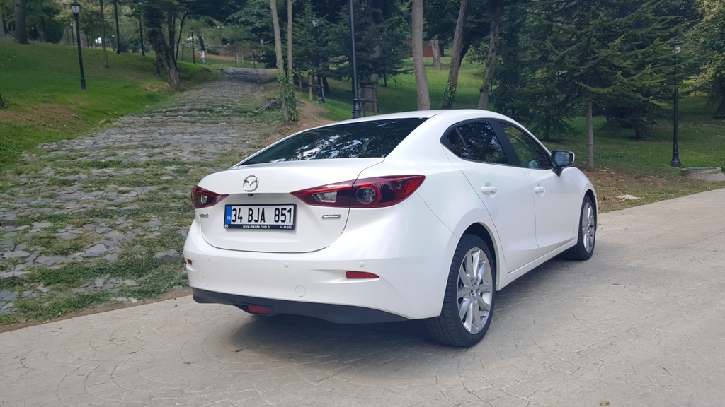 Mazda, kampokt sedanında 1.5 litrelik benzinli ve dizel motor seçenekleri sunuyor. Dizel versiyonu konuğumuz olan araç, 105 beygir güç ve 270 nm tork üretiyor. 6 ileri otomatik şanzımanla kombine edilen motor, 1370 kilogramlık aracı hareket ettirmede zorlanmıyor. Şanzıman ise otomatik konumda vites geçişlerini hissettirmeden gerçekleştirirken manuel kullanımda yeterli değişim hızına sahip. 0-100 km/s hızlanmasını 11.6 saniyede tamamlayan aracın son sürati ise saatte 184 kilometre. Fabrika verilerine göre ortalama tüketimi 4.4 litre olan araç, bizim ağırlıklı olarak şehir içindeki kullanımımızda 6 litrelik değere ulaştı. Tüketim otoyol sürüşlerinde ise rahatlıkla 5 litre seviyesine düşebiliyor. Yol tutuş ve sürüş konforu olarak oldukça beğendiğimiz aracın net tepkiler veren direksiyon sistemi keyifli bir kullanım vadediyor. Üst donanımda sunulan Bose imzası ses sisteminin kalitesi de etkileyici.