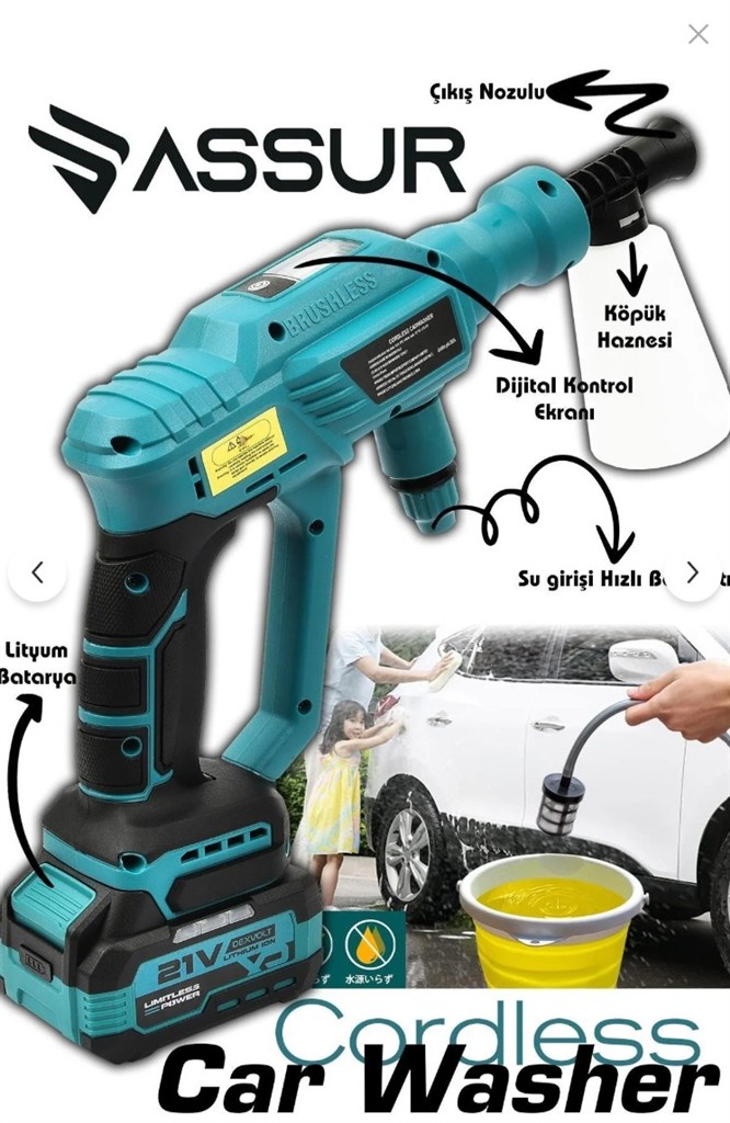 Assur ASR431 Akülü Oto Yıkama Makinesi, günlük kullanıcı ve hobi amaçlı araç sahipleri için başarılı bir portatif temizlik çözümü sunuyor. Özellikle şehir içi alanlar, balkon veya bahçe gibi bölgelerde kullanımı kolaylaştıran ergonomik yapısı, taşınabilir kablosuz sistem ve LED gösterge paneliyle, basit ama etkili bir oto bakım aracı olarak öne çıkıyor.