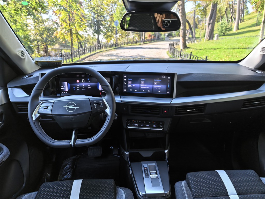 Kabin içine geçtiğinizde Opel’in sade ama fonksiyonel tasarım dili hemen fark ediliyor. Çift ekranlı Pure Panel kokpit, dijital gösterge ve multimedya ekranını tek bir yüzeyde buluşturuyor. Dokunmatik ekranın tepkileri hızlı, menü geçişleri sezgisel. Malzeme kalitesi segment için tatmin edici. Geniş ön koltuklar, arkada yeterli diz ve baş mesafesiyle birlikte uzun yolculuklarda konfor sağlıyor. Bagaj hacmi de günlük ihtiyaçlar için oldukça yeterli.