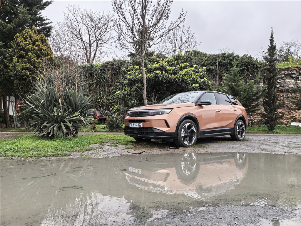 Öncelikle gözlerimiz, markanın yeni aydınlatmalı Şimşek logosu ve keskin LED far çizgileri üzerinde toplandı. Grandland, elektrikli SUV olmanın verdiği sessizliği tasarımıyla destekleyen aerodinamik hatlara sahip. Opsiyonel siyah tavan ve 20 inç jantlar, aracın yolda çok daha sportif görünmesini sağlıyor. Arkadan bakıldığında da minimalizm ve modern çizgiler, aracın elektrikli kimliğini hemen hissettiriyor.